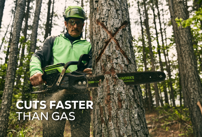 With a high-torque design that cuts faster than gas-powered chainsaws, the 20" 3.4kW Commercial Chainsaw from Greenworks® Commercial boasts an unbeatable combination of power and endurance.