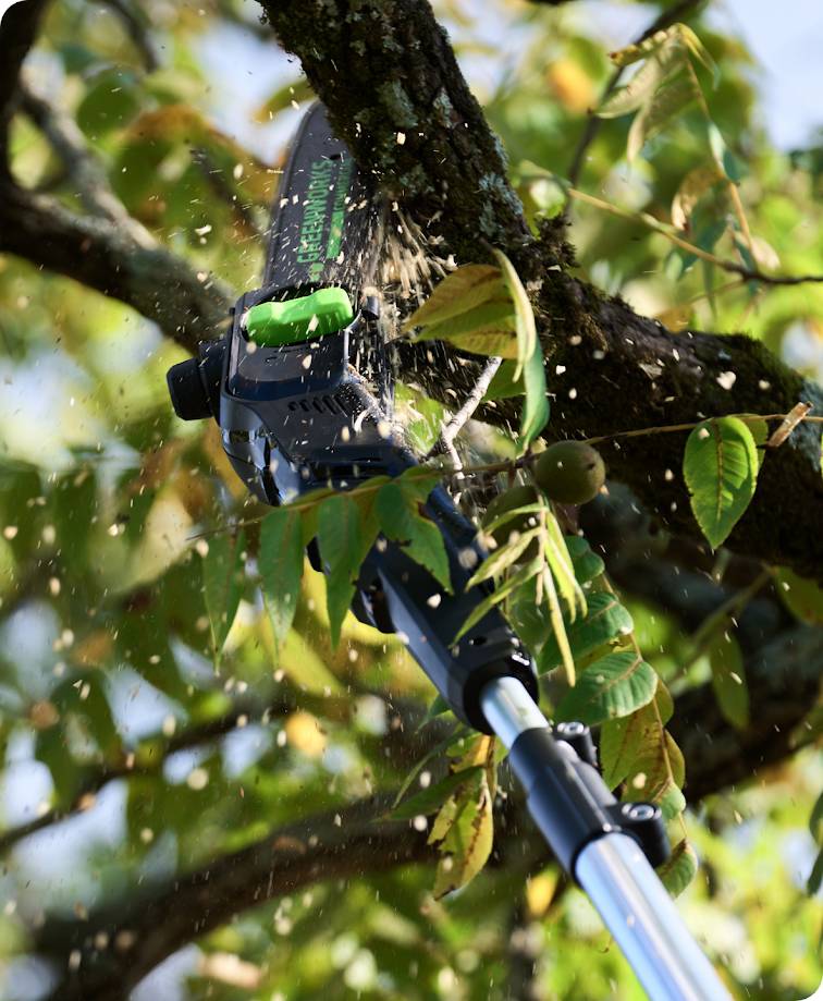 The tallest limbs and hardest-to-reach areas require specialized equipment that can cut through wood with unmatched efficiency and precision. Our 82V Polesaw is engineered to exceed expectations, allowing you to effortlessly tackle the toughest cutting challenges. Capable of reaching seemingly inaccessible spots, the 82V Polesaw’s exceptional power, extended reach, and intelligent design ensure you outperform the competition. Don't just meet the demands of your cutting tasks; surpass them with a tool designed to excel in any cutting situation, giving you the edge you need to achieve superior results every time.