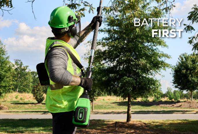 Say goodbye to gas and embrace the reliable performance of battery-powered machinery. The 82V Polesaw produces 900W output, which is the equivalent of 31cc gas power units. When you work with Greenworks® Commercial, you’re truly not sacrificing power or efficiency when you switch from gas to electric. Instead, you’re making the choice for a more sustainable and eco-conscious solution that doesn't compromise on power.