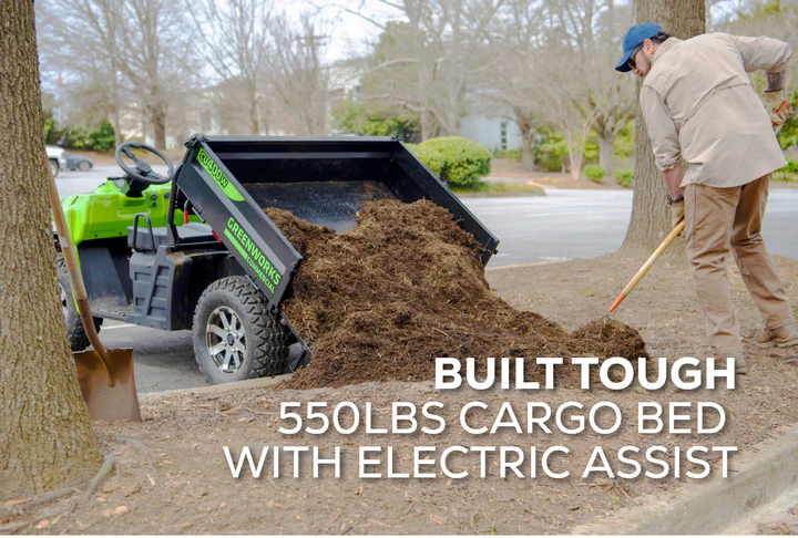 Complete your work with speed and precision with the CU400W, a go-anywhere, do-anything commercial work utility vehicle with the power of a 22 HP gas engine but none of the costly upkeep. Say goodbye to fuel, fluids, and filters - Greenworks® Commercial leads the way with this battery-powered UTV that’s engineered to redefine efficiency in your hauling and transporting tasks.