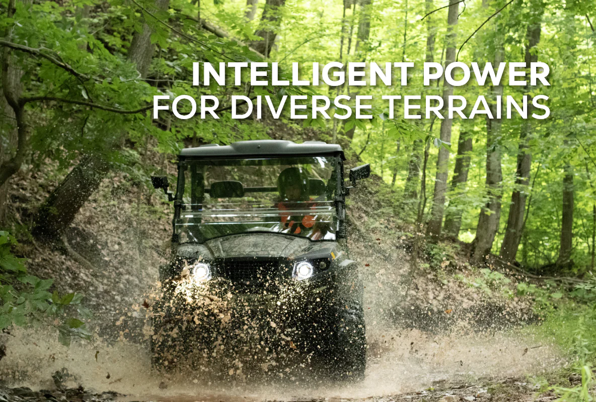 At the heart of the CU400W is its Intelligent Power™ system. Acting as the nerve center, it efficiently manages the battery, brushless motors, and user-interface, creating a secure closed-loop system. This intelligence allows the UTV to automatically respond to changing conditions without user intervention, ensuring optimal efficiency and a more confident controller.