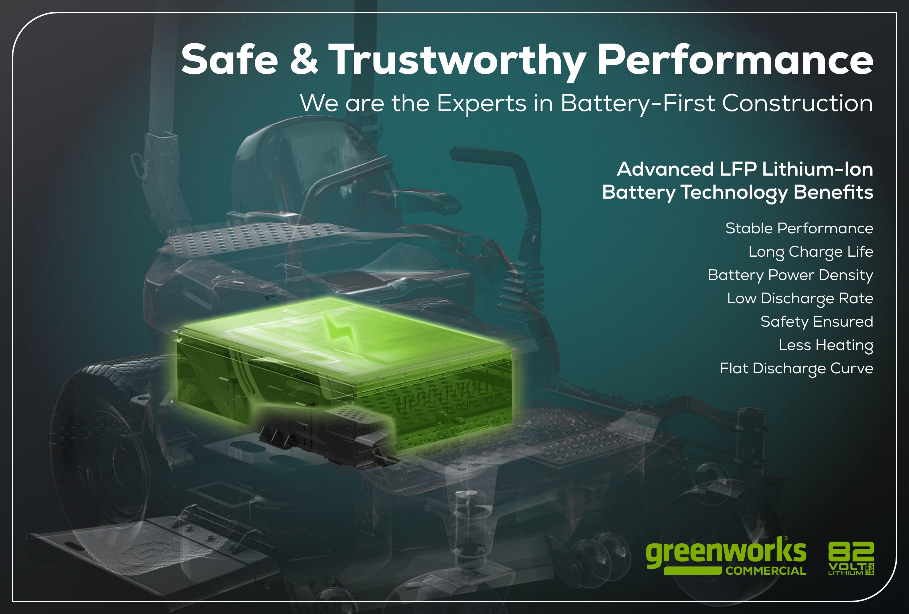 Greenworks Commercial has the widest and deepest product portfolio under its 82v battery platform.