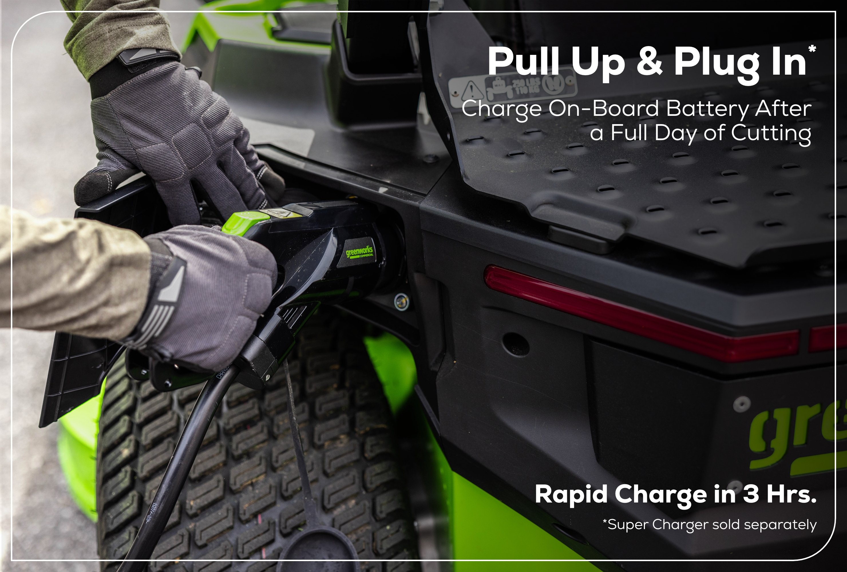 Greenworks Commercial makes charging your OptimusZ easy.