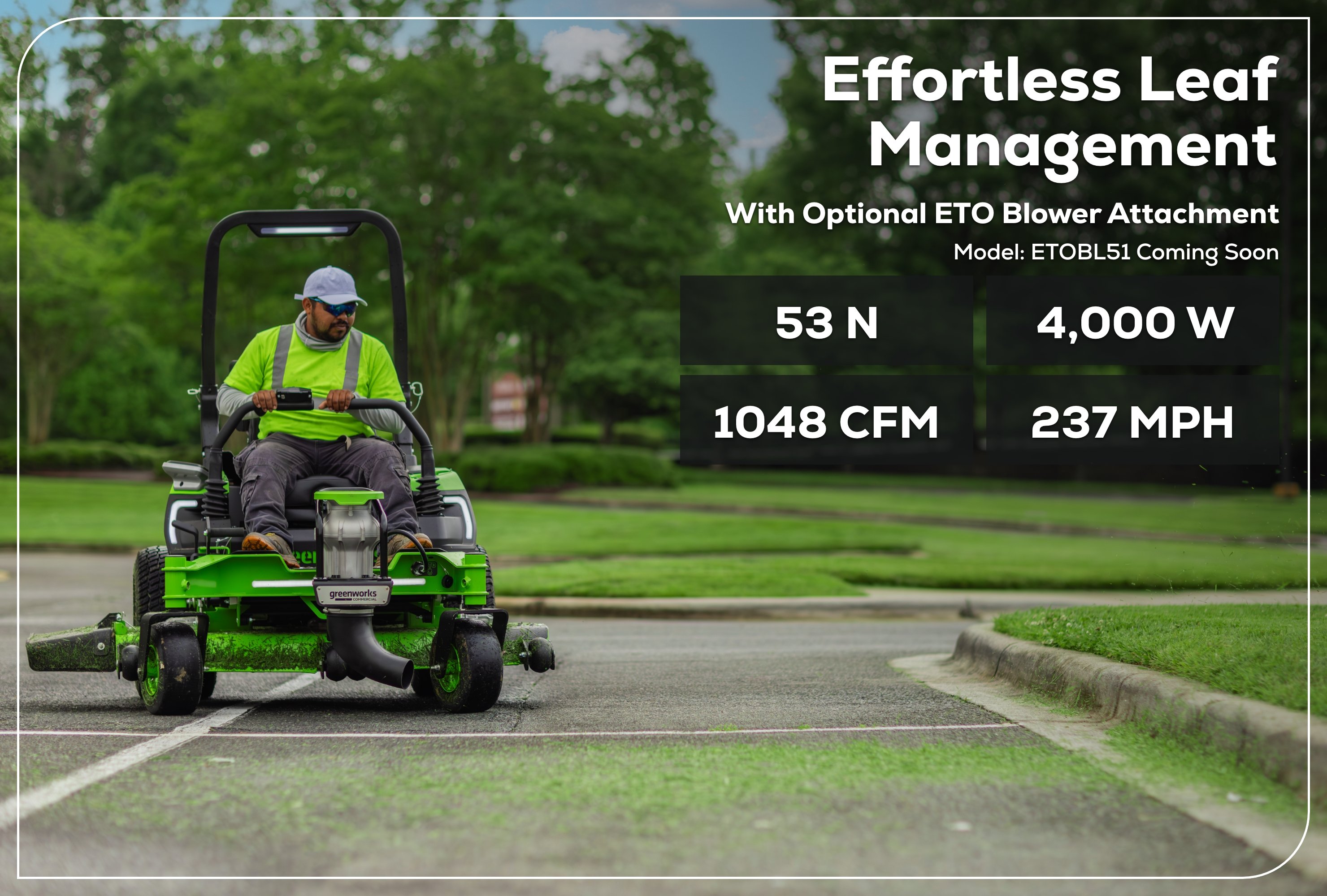 THE PEOPLE ASKED FOR MAXIMUM ELECTRIC MOWING POWER: GREENWORKS® COMMERCIAL DELIVERED