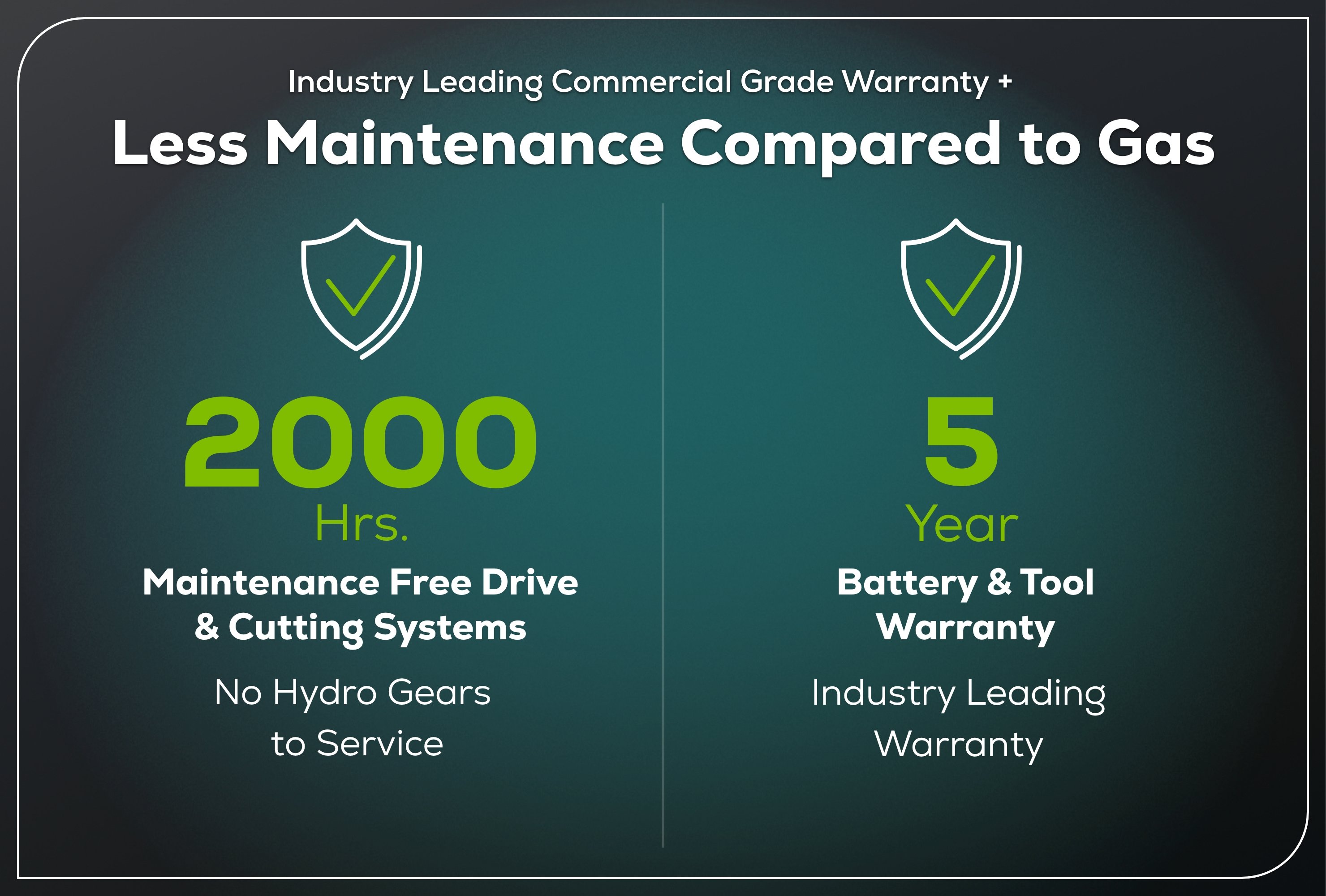 We feel so confident in our construction that Greenworks Commercial offers an industry leading 5 year/2000hrs (whichever comes first). commercial warranty on any OptimusZ.
