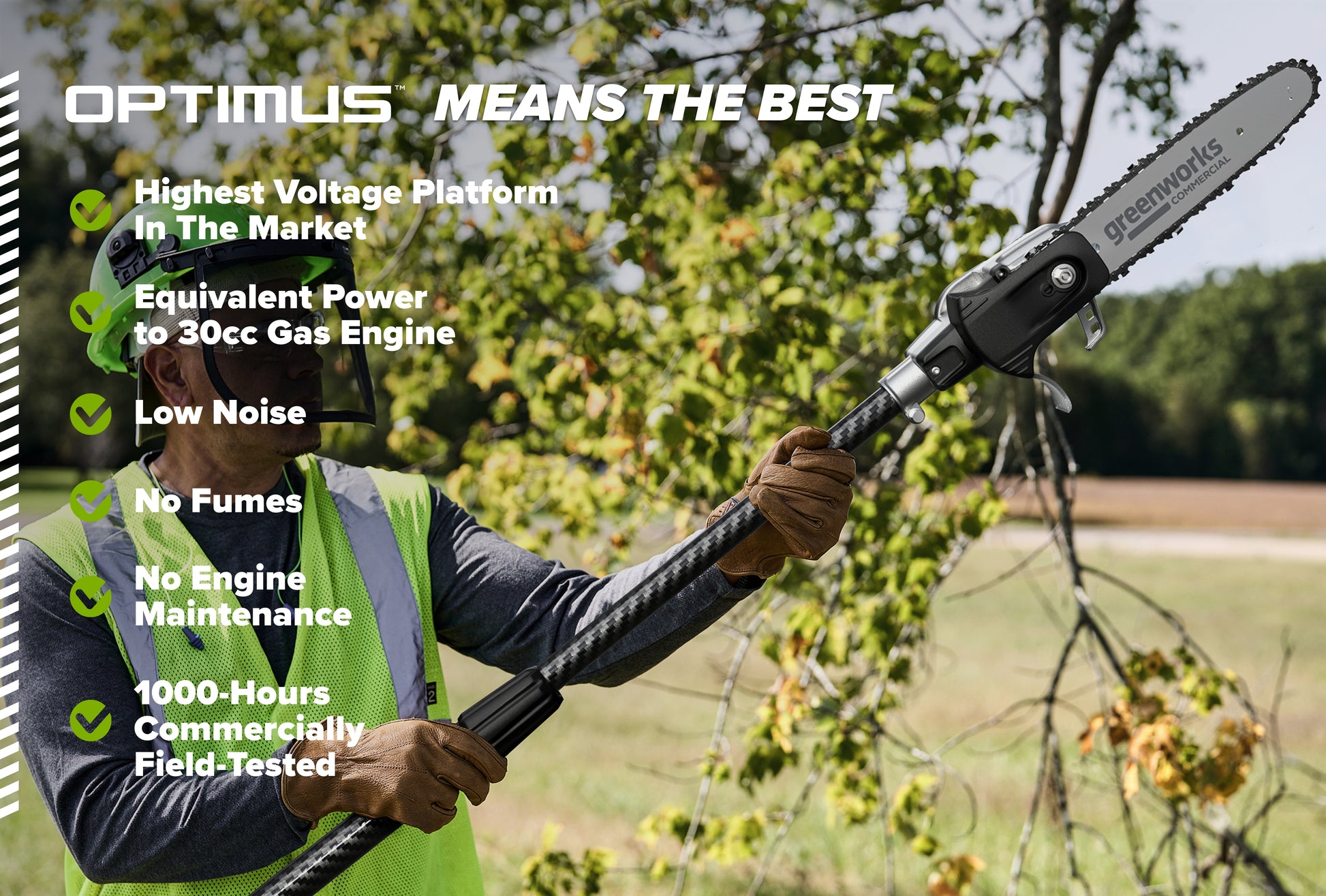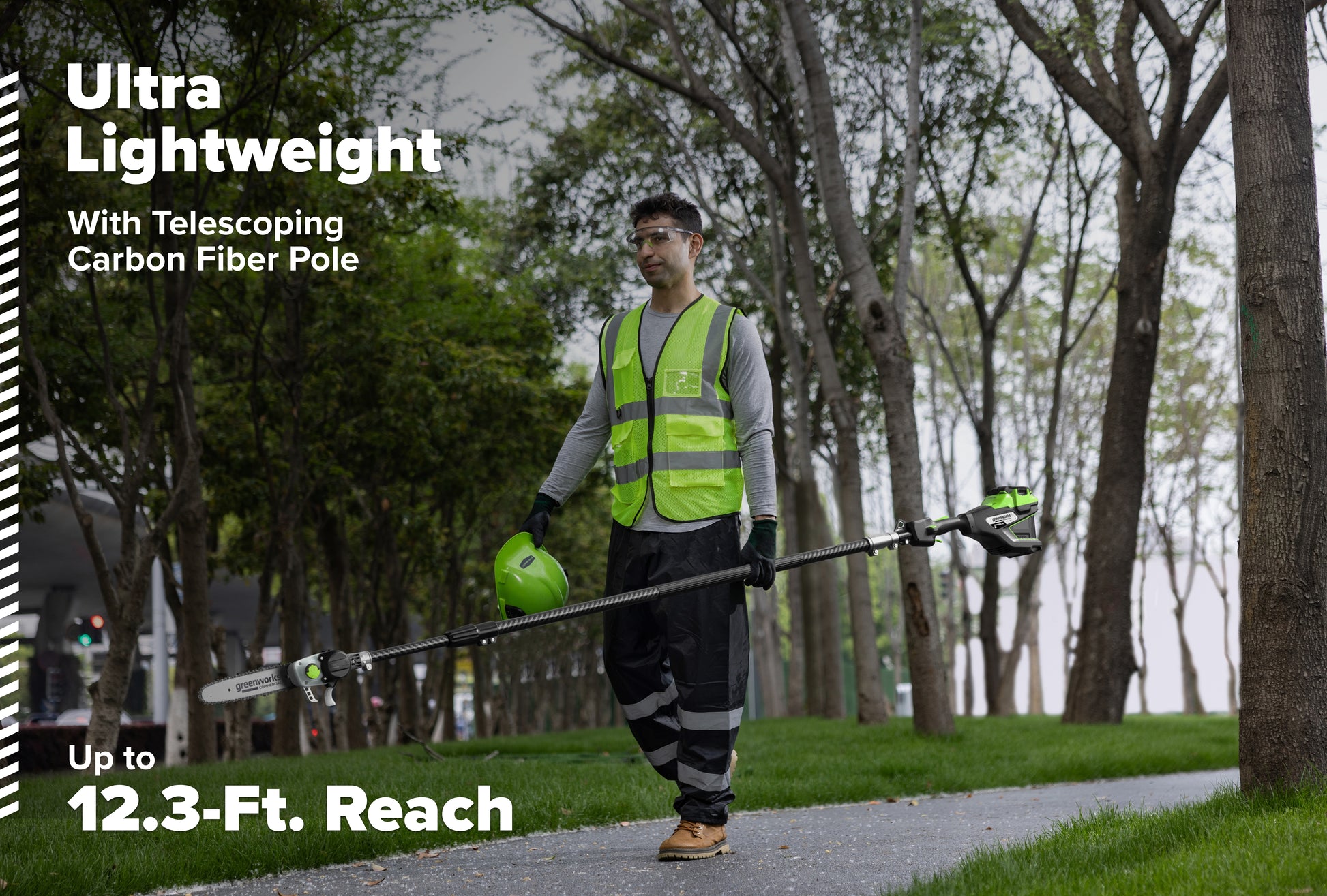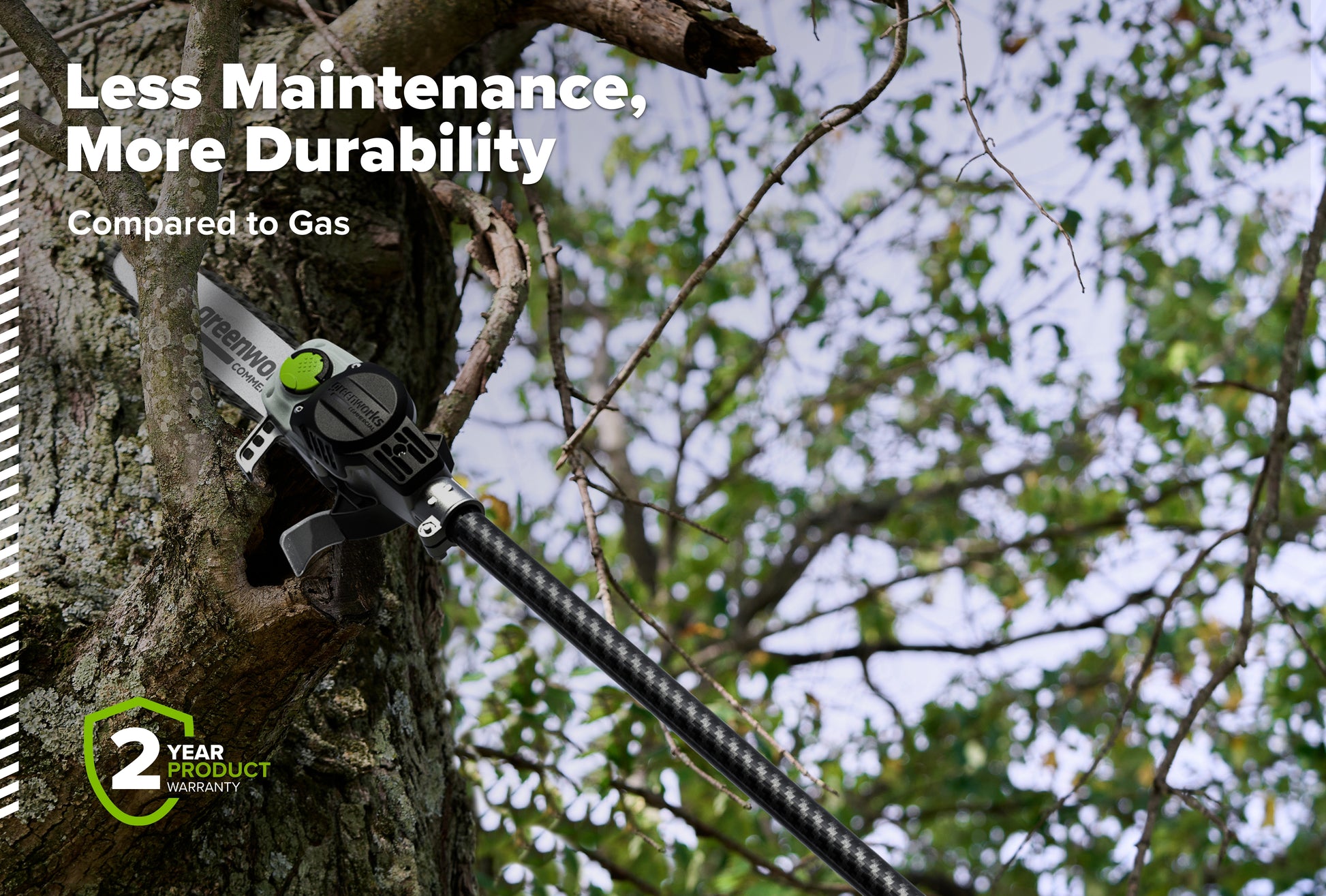 The tallest limbs and hardest-to-reach areas require specialized equipment that can cut through wood with unmatched efficiency and precision. Our 82V Pole saw is engineered to exceed expectations, allowing you to effortlessly tackle the toughest cutting challenges. Capable of reaching seemingly inaccessible spots, the 82V Pole saw’s exceptional power, extended reach, and intelligent design ensure you outperform the competition. Don't just meet the demands of your cutting tasks; surpass them with a tool designed to excel in any cutting situation, giving you the edge you need to achieve superior results every time.