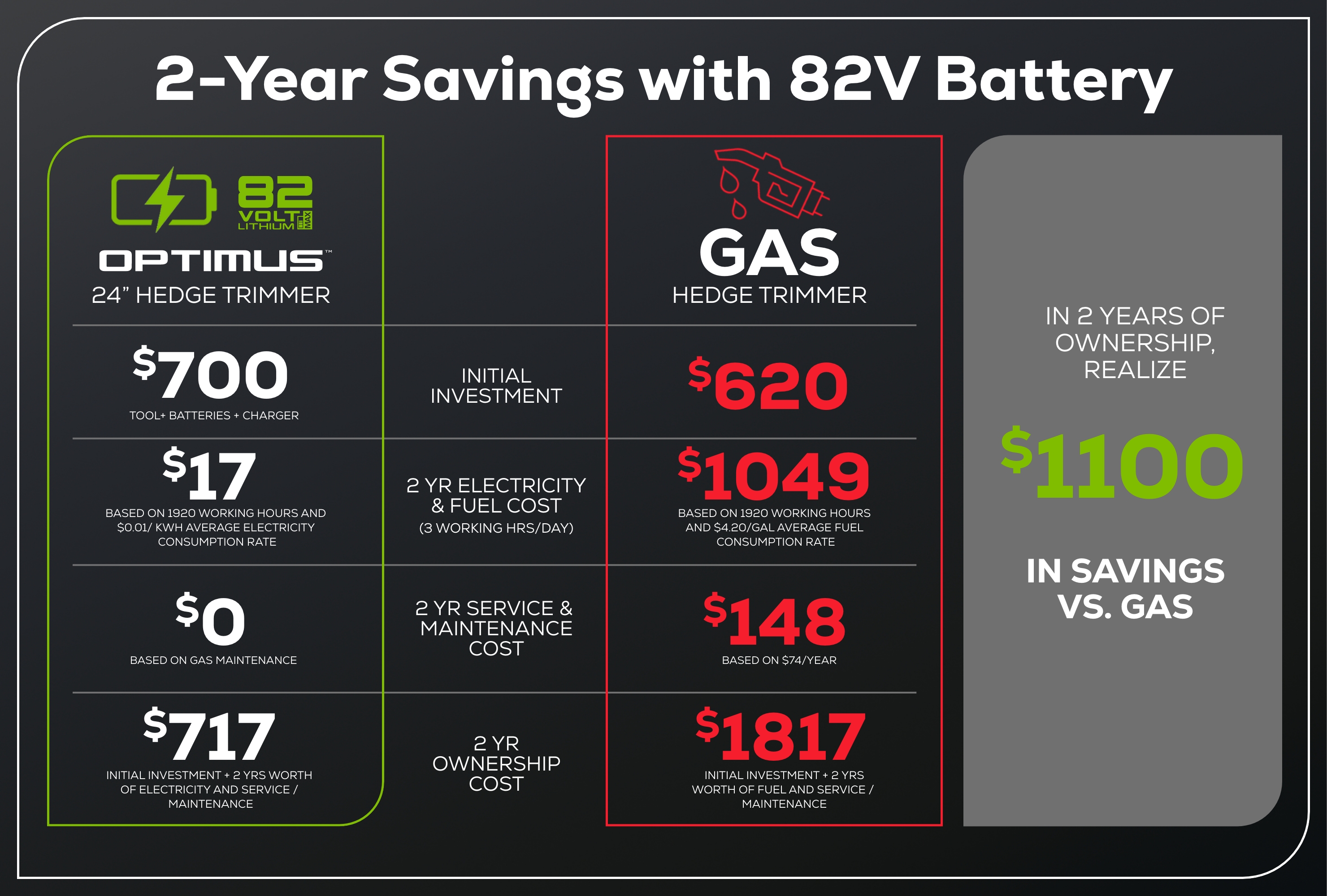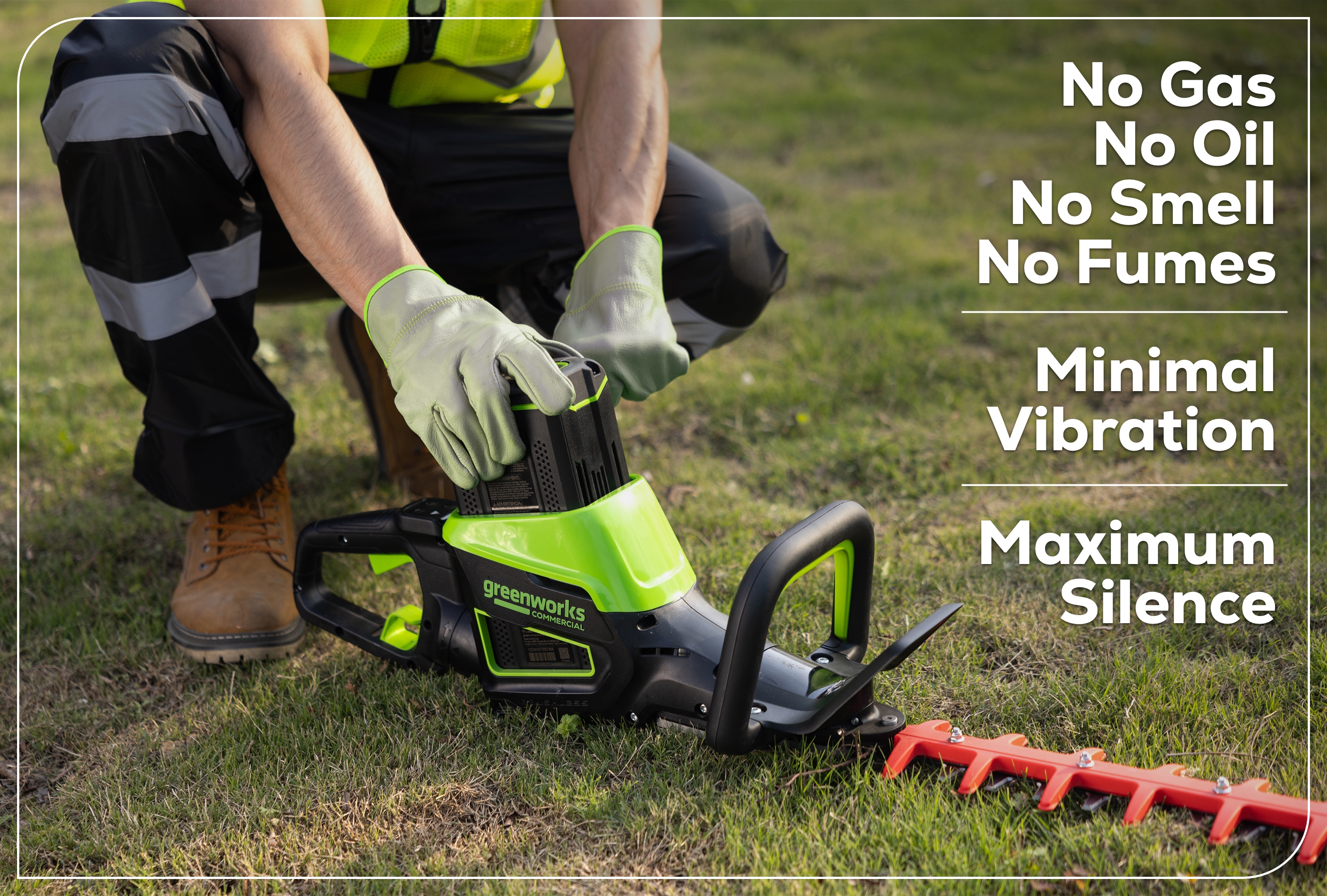 Greatly reduce intensive maintenance work and save both money and time vs. traditional gas powered hedge trimmers.
