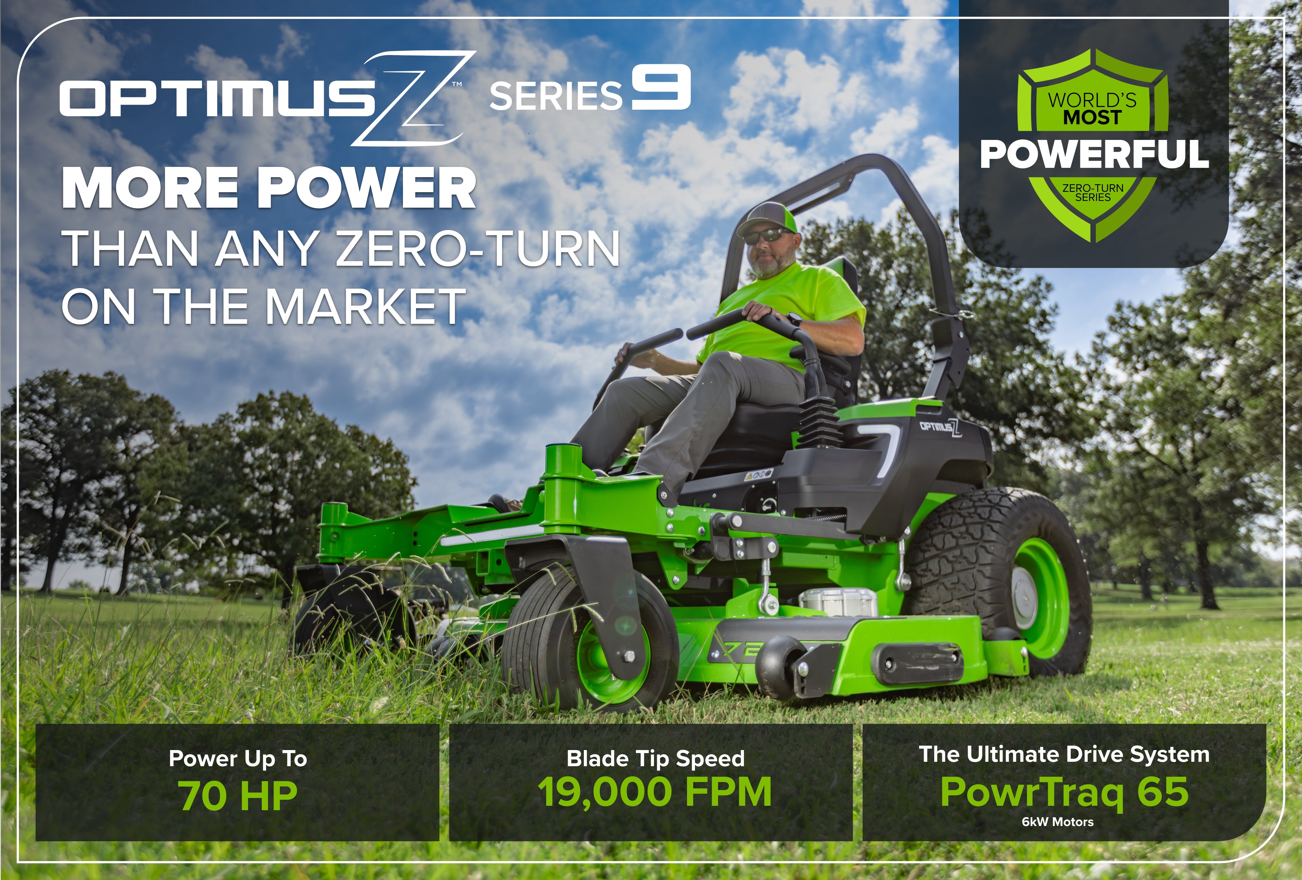 The OptimusZ 72" Rear Discharge Zero-Turn Mower is the most powerful, and productive electric mower on the commercial market. Powered by a 36kWh battery, it delivers gas-equivalent performance of 70 horsepower, up to 8 hours of runtime, and the ability to mow 28 acres on a single charge. Designed for professional landscapers and large-scale operations, the OptimusZ combines all-day cutting capability with breakthrough technologies like the OptimusCut 30 constant-speed cutting system, PowrTraq 65 high-torque drive system, and integrated 4G smart connectivity for fleet management, theft protection, and real-time diagnostics. With zero emissions, low noise, and virtually no maintenance, it redefines what’s possible in commercial mowing—offering a cleaner, faster, and more profitable way to work.
